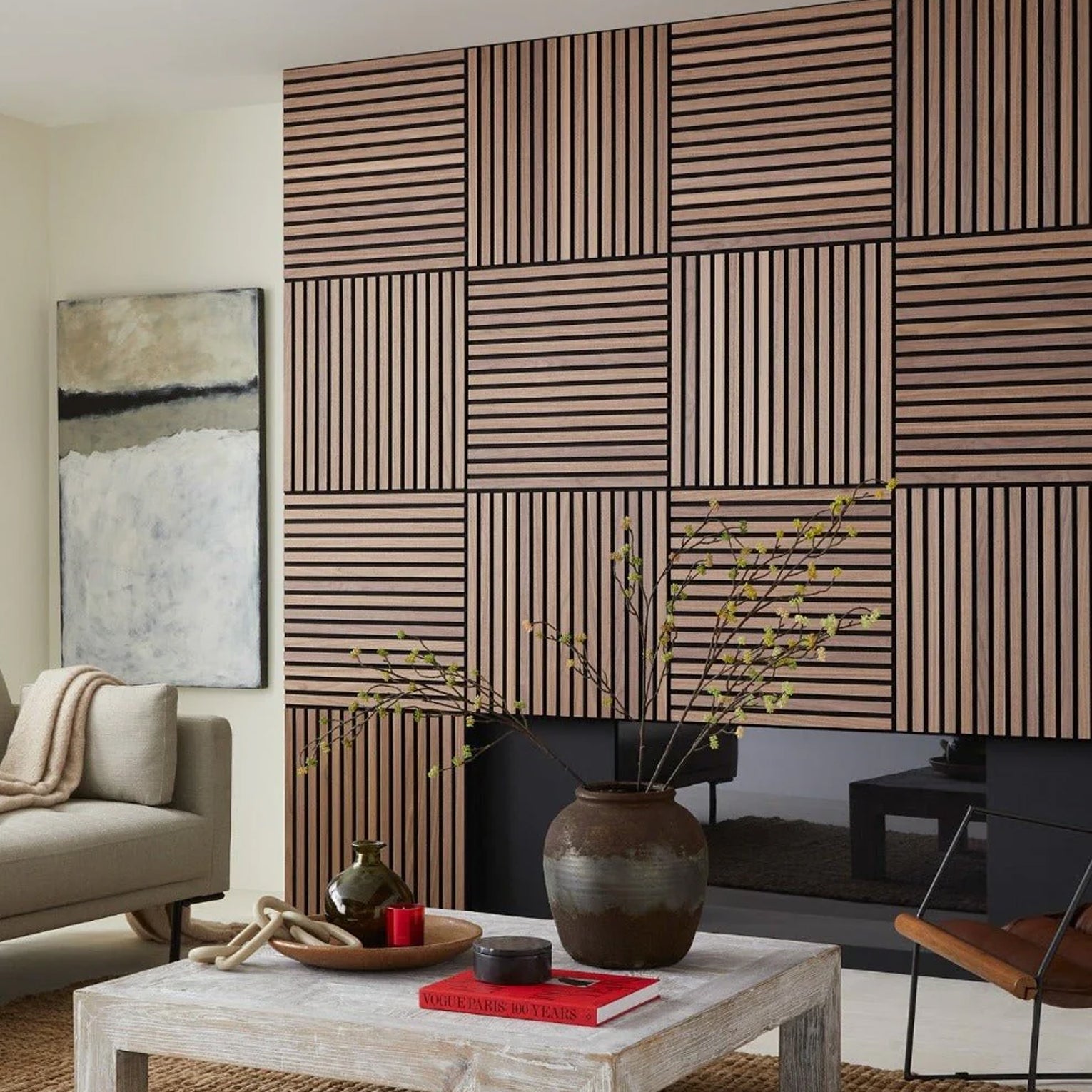 Vous allez adorer votre premier mur en tasseau de bois avec des panneaux fabriqués à partir de bois MDF et recouvert d'un placage selon la teinte choisie.