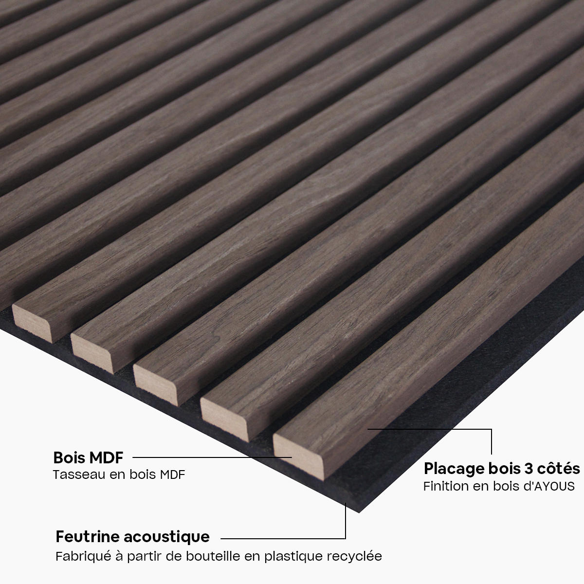 Vous allez adorer votre premier mur en tasseau de bois avec des panneaux fabriqués à partir de bois MDF et recouvert d'un placage selon la teinte choisie.