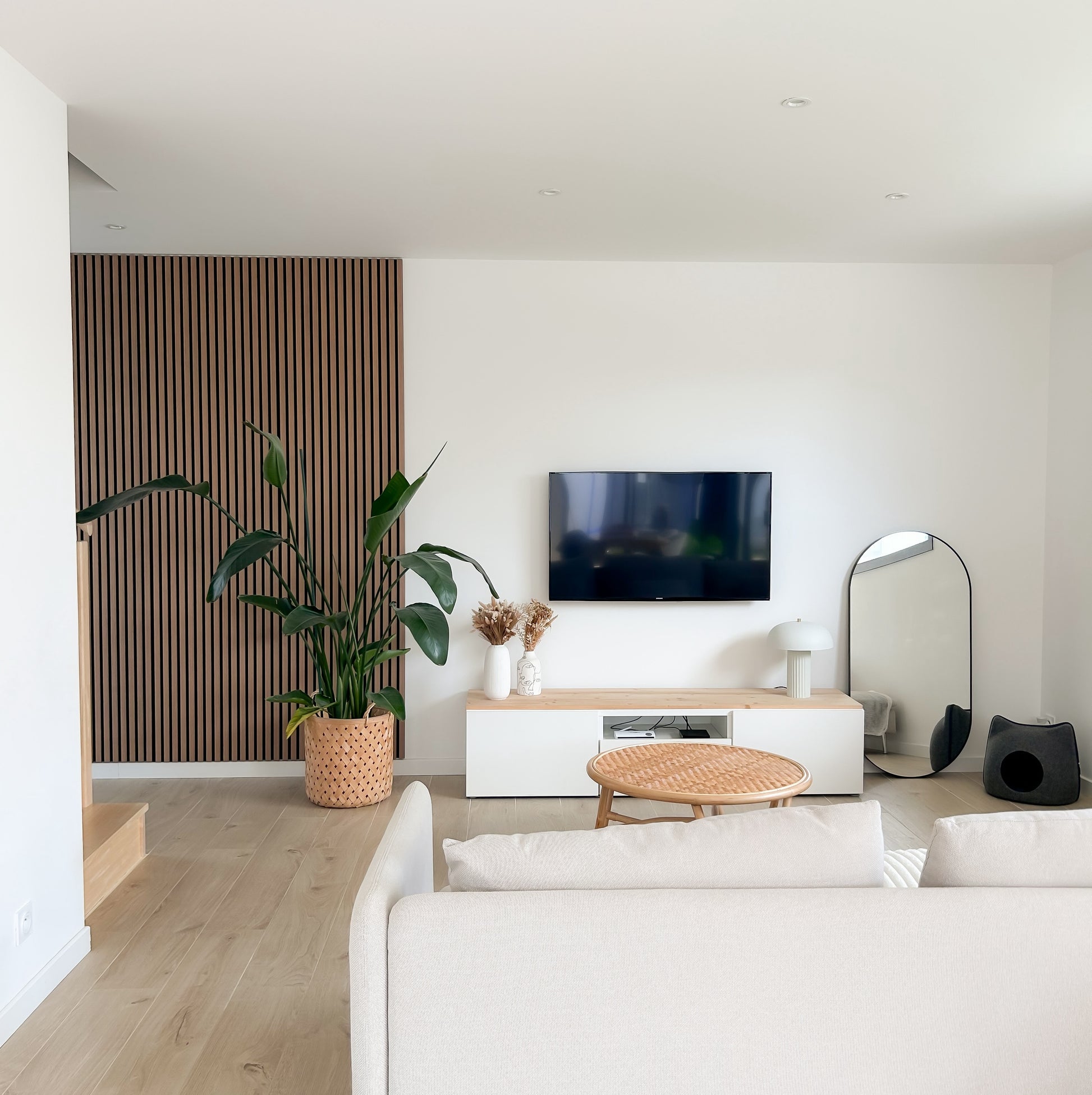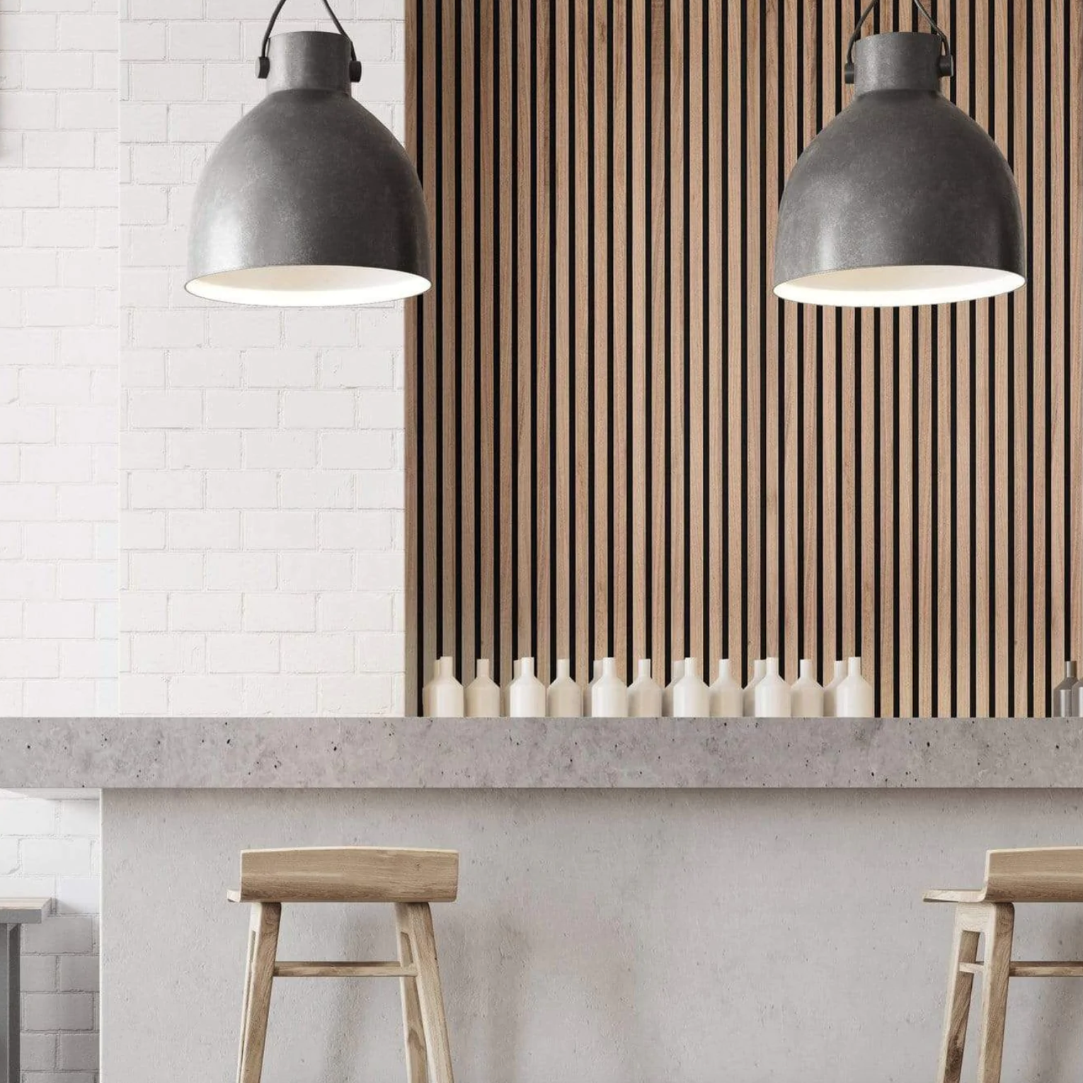 Vous pouvez facilement créer un espace moderne et tendance, en installant nos panneaux muraux en tasseaux de bois Bowa sur votre mur.